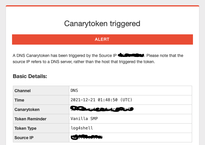 In your server’s console run the command say PASTE_TOKEN_HERE. If nothing happens but the server echos it back and you don’t get an email then you are all set! Your server is patched against Log4Shell!