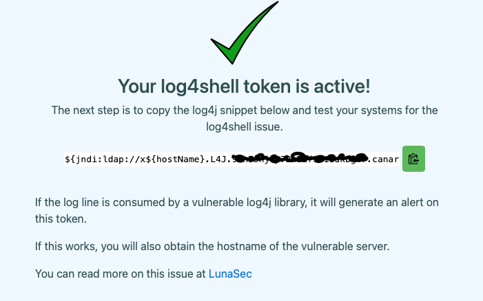 Canary tokens is a service that allows you to check for many common exploits, in this case Log4Shell. We will use their public service to run our check. If you are worried about security you can deploy your own instance using their Github repo but that will not be covered here.